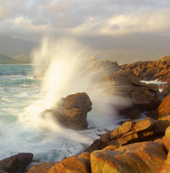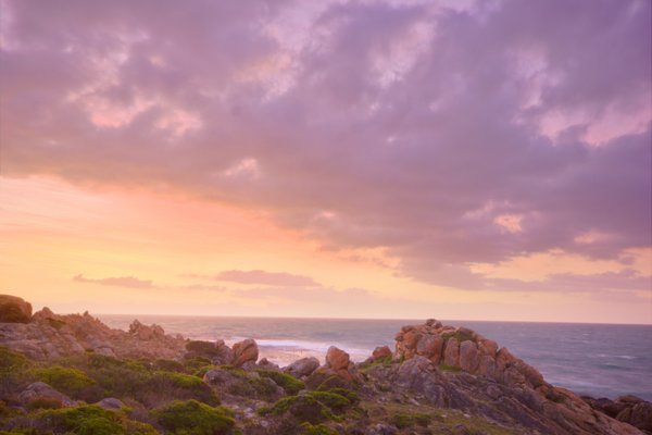 April fool flowers make their appearance here in the end of March and beginning of April. The view is spectacular. You watch the sun set on the other side of the mountains across the sea, while watching the waves break around the point, with the beatuiful skyline of the Pringle Bay mountains to enjoy