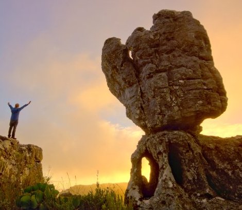 A beautiful, medium to low fitness walk in the Cape Peninsula to some beautiful rock formations that look down over the greater Cape Town. These rocks in the area have a variety of arches and shapes. Only a small section of this walk is off path, at the end, so this is not a frequently visited spot.