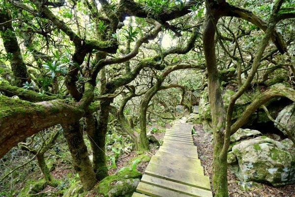 In the heart of the Kalk Bay mountains is a beautiful hidden forest. The primary tree here is milkwood, which often grow up to over 500 years old. Even in the midst of extreme fires which have swept though this area, these forests survive. The knarled branches wrap around on every side, as you walk though a planked path. This path was designed to protect the undergrowth. You will see the leaves of the April Fool flower, A strange plant that sends out two big leaves for months before the flower is due. The flower arrives only when the leaves have died.